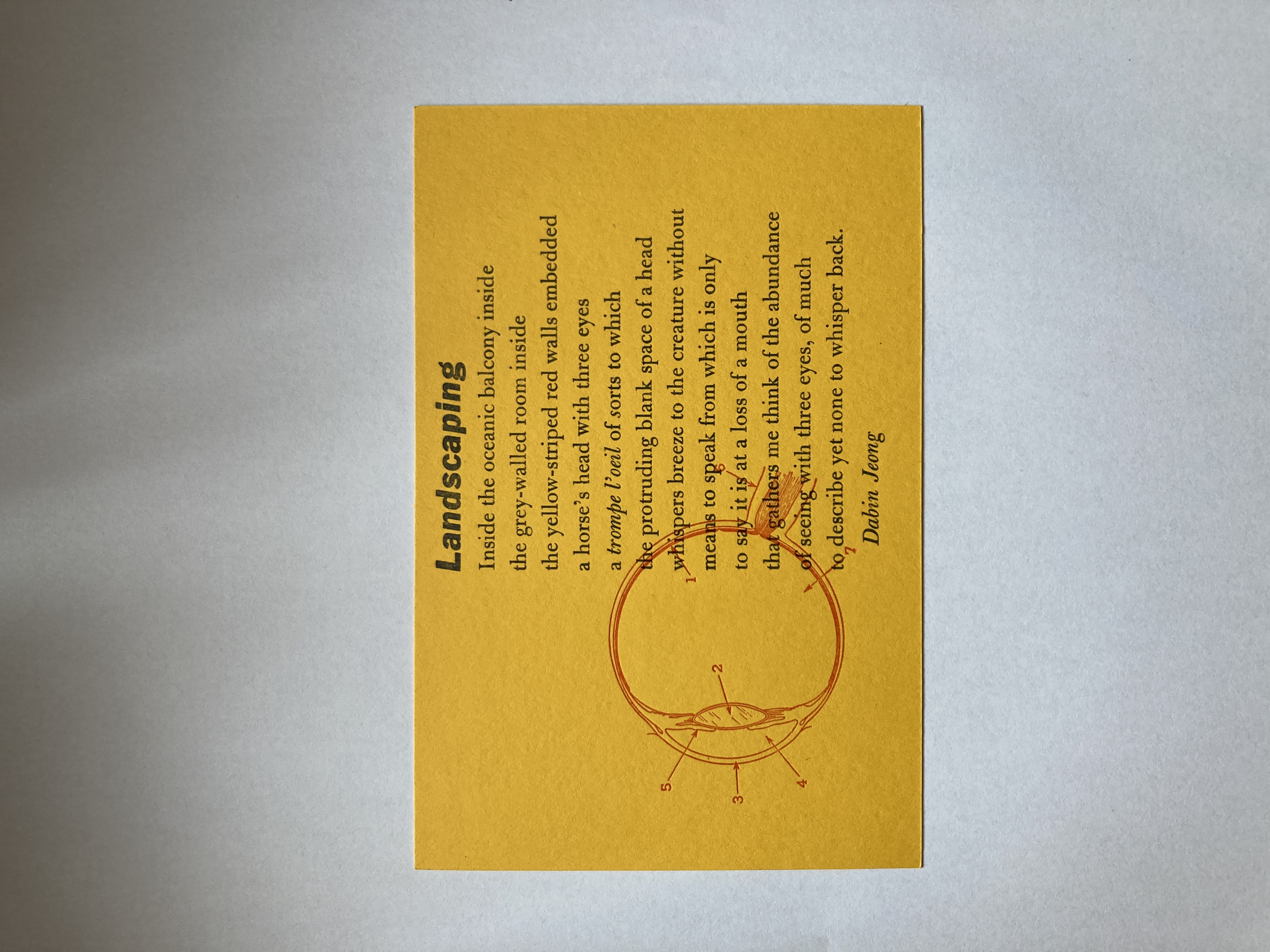 Dabin Jeong (they/she) is a poet and translator from Seoul, South Korea. Their poem won the Chestnut Review's 2021 Stubborn Writer's Contest, selected by Dorothy Chan. Their works appeared or are forthcoming in Up the Staircase Quarterly, Indiana Review, Brooklyn Poets, Chestnut Review, Perhappened mag, and Chogwa zine.